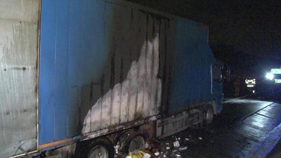 Sürücü kamyonu emniyet şeridine çekerek yangına müdahale etmek istedi fakat kısa sürede büyüyen yangın dorseyi kapladı.