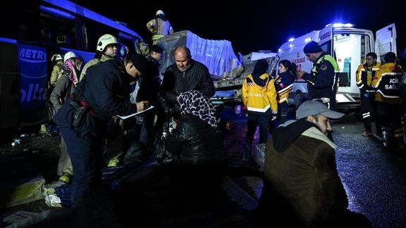 Kuzey Marmara Otoyolu'nda yolcu otobüsü ile tırın çarpışması sonucu 1 kişi öldü, 31 kişi yaralandı.