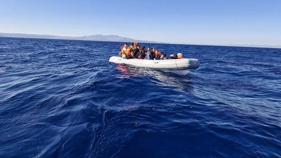 Muğla'nın Fethiye ilçesi açıklarında lastik botta 39 düzensiz göçmen yakalandı.