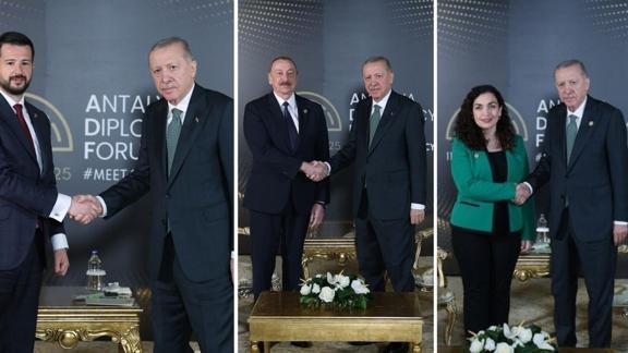 Başkan Recep Tayyip Erdoğan, bu kapsamda Türkiye'yi ziyaret eden Azerbaycan Cumhurbaşkanı İlham Aliyev, Karadağ Cumhurbaşkanı Jakov Milatoviç, Kosova Cumhurbaşkanı Vjosa Osmani Sadriu ve Libya Başbakanı Abdülhamid Dibeybe ile bir araya geldi.