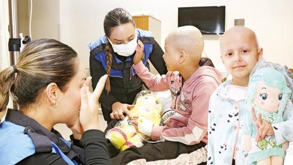 Hastalığı nedeniyle saçlarını kazıtmak zorunda kalan, 10 yaşındaki G.A. ise kendisine bez bebek hediye eden polisin yüzüne dokunup; "Saçların çok güzelmiş" diye iltifat etti. O anlar yürekleri burkarken, anne olan kadın polis, gözyaşlarına hâkim olamadı.