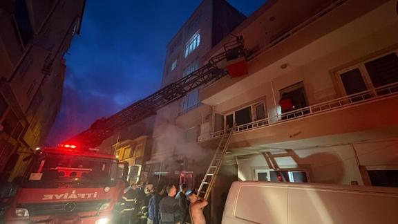 Yoğun duman nedeniyle binada mahsur kalanlar itfaiye aracının merdiveniyle üst kattaki dairelerin balkonlarından tahliye edildi.