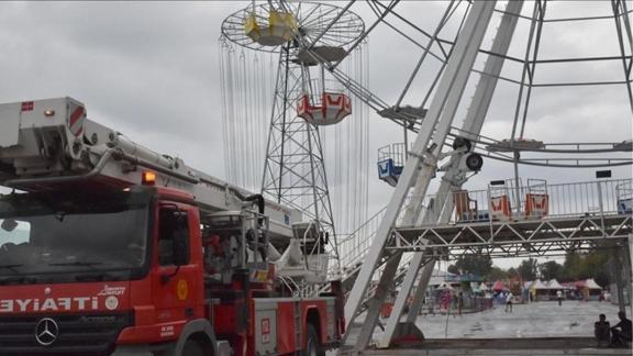 Ekiplerin çalışmasıyla dönme dolaptan indirilen vatandaşların sağlık durumunun iyi olduğu bildirildi.