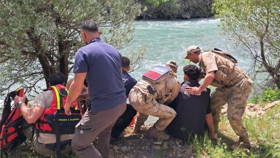 Taşlara tutunarak hayatta kalmaya çalışan vatandaş için Jandarma harekete geçti.
