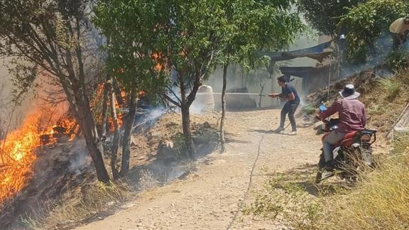 8 itfaiye aracı ve Büyükşehir Belediyesine ait iş makineleriyle müdahale edilen yangında 1 ev zarar gördü.