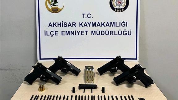Yapılan aramalarda 6 ruhsatsız tabanca, 72 fişek, 30 silah yapımında kullanılan yay, 2 silah yapımında kullanılan icra mili, tabanca şarjörü, 10 silah yapımında kullanılan çeşitli ebatlarda demir parçaları ele geçirildi.