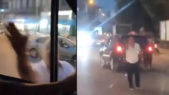 Otomobilden inen M.E., tehditte bulunarak ambulansın camını yumrukladı. Ambulansta bulunan 2 kadın sağlık çalışanı, paniğe kapılarak ağlamaya başladı. Çalışanlardan biri de bu anları cep telefonuyla görüntüledi. Ambulans sürücüsü A.E.K.'nin farklı güzergahlara gitmesine rağmen M.E., bir süre daha takibi sürdürdü. A.E.K. durumu polise haber verdi. M.E. daha sonra otomobiliyle uzaklaşarak gözden kayboldu. Sağlık çalışanlarının şikayeti sonrası M.E. gözaltına alındı.