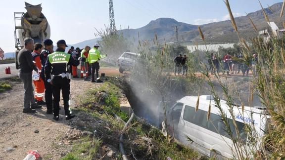 Çarpışmanın etkisiyle sürücüsünün kontrolünden çıkan minibüs, yol kenarındaki sulama kanalının sığ bölümüne düştü.