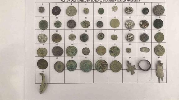 Operasyon düzenleyen ekipler şüpheli şahsı yakalayarak gözaltına aldı. Şüphelinin evinde yapılan aramada jandarma 1 dedektör, Roma ve Bizans dönemlerine ait 42 adet sikke, 2 kolye, 1 yüzük ile 1 obje ele geçirildi.