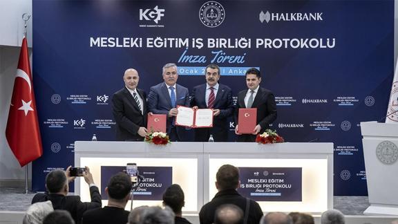 Mesleki ve teknik ortaöğretim kurumlarından mezun olan 29 yaş ve altı gençlerin girişimcilik yoluyla kendi işlerini kurmaları ve mezuniyet alanlarında istihdam edilmelerini teşvik etmeye yönelik işbirliği protokolü, Milli Eğitim Bakanlığı (MEB), Kredi Garanti Fonu (KGF) ve Halkbank arasında imzalandı.