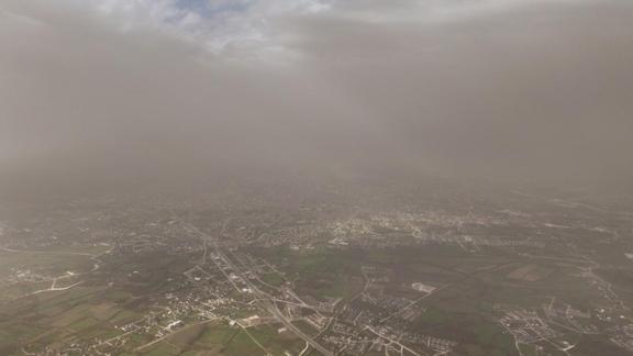 Kente doğu yönünden gelen toz bulutları, görüş mesafesini azalttı.