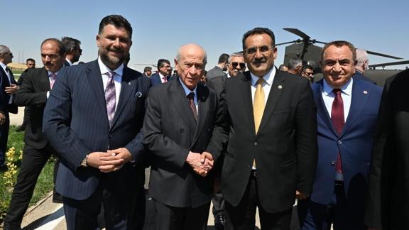 MHP'nin NSosyal hesabından yapılan paylaşıma göre, Bahçeli, kendisini karşılayan DEM Parti'li Türker ile bir süre sohbet etti.
