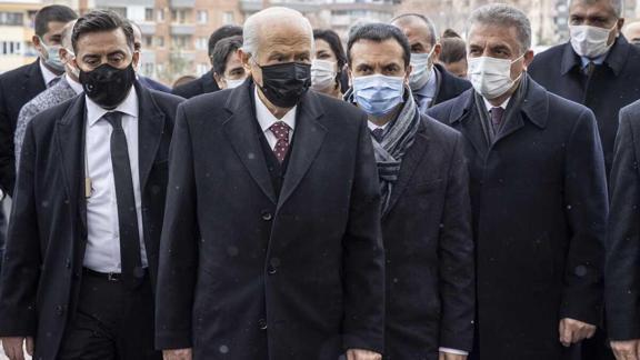 MHP Genel Başkanı Bahçeli, Anıtkabir ve kurucu Genel Başkan Alparslan Türkeş'in anıt mezarına yapılan ziyaretlerin ardından parti otobüsüyle Genel Merkez'e geldi.