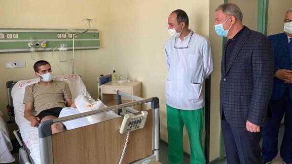 Milli Savunma Bakanı Hulusi Akar, Pençe-Şimşek ve Pençe-Yıldırım operasyonlarında yaralanan ve Gülhane Eğitim Araştırma Hastanesi'nde tedavi gören askerleri ziyaret etti.