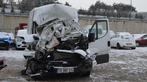 Zihni Genç (28) yönetimindeki 34 DRE 514 plakalı panelvan minibüs, aynı istikamete seyir eden Hüseyin Ok'un kullandığı 55 JU 948 plakalı tıra arkadan çarptı. Kazada sürücü ile aracın içinde bulunan eşi Havva (27), çocukları Asel Mina Genç (4) ve Eymen İsmail (2) aracın içerisinde sıkıştı. Kazayı gören diğer sürücüler durumu 112'ye bildirdi. Olay yerine jandarma, sağlık ve itfaiye ekipleri sevk edildi.