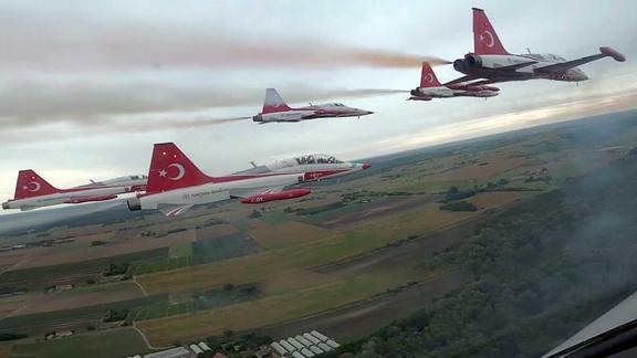 Bakanlıktan yapılan açıklamada, "Hava Kuvvetlerimizin akrobasi timi Türk Yıldızları, Macaristan Uluslararası Askeri Hava Gösterileri kapsamında Kecskemet'te uçuş gerçekleştirdi." ifadesine yer verildi.