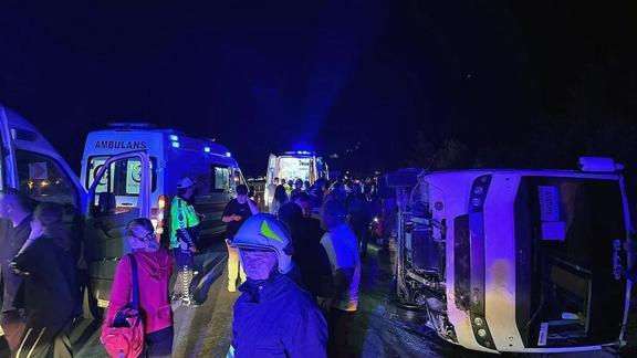 Kazada sürücü ile 2 öğretmen ve 22 öğrenci yaralandı. İhbar üzerine bölgeye çok sayıda ambulans, itfaiye, jandarma ve polis ekibi sevk edildi.