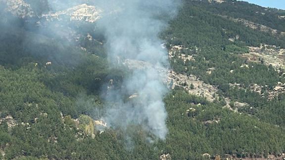 Çamlıyurt Mahallesi'ndeki ormanlık alanda henüz belirlenemeyen bir nedenle yangın çıktı.