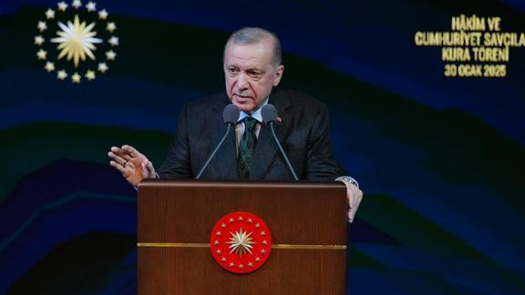 Konuşmasına, bugünkü kura merasimiyle yeni görev yerleri belirlenecek 1075 hakim ve savcı adayını tebrik ederek başlayan Erdoğan, göreve yeni başlayacak 1075 hakim ve savcı adayıyla adalet teşkilatındaki hakim ve cumhuriyet savcılarının toplam mevcudunun 25 bin 695'e çıktığını belirtti.