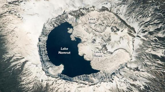 Her yıl binlerce turist alan Bitlis'in Tatvan ilçesinde bulunan Türkiye'nin en büyük krater gölü olan Nemrut Krater Gölü'nün, NASA astronotları tarafından uzaydan fotoğrafı çekildi.NASA'nın resmi X hesabından yayınlanan ve, "Harika bir kaldera Türkiye'deki Nemrut Dağı'nın karla kaplı kalderasının bu fotoğrafını bir @Space_Station astronotu çekti. Kalderanın doğu yarısı geçmiş patlamalardan kaynaklanan katılaşmış lav akıntılarına sahiptir. Nemrut Gölü'nü besleyen kaplıcalar batı yarısına akıyor" notuyla paylaşılan fotoğraf büyük beğeni aldı.