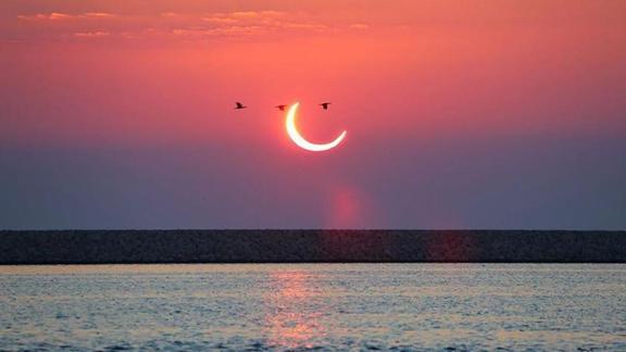 Kısmi tutulmanın başlamasından 1 saat 20 dakika sonra Ay, doğrudan Güneş'in önüne geçerek "ateş çemberi"ni oluşturacak.