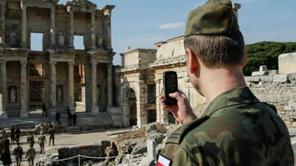 Turist rehberince antik kent hakkında bilgilendirilen heyet üyeleri, bol bol fotoğraf çektirdi.
