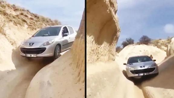 Tarihi bölgeyi gezmeye gelen bir sürücü navigasyonu takip ederek ilerlerken bir anda yoldan çıktı. Kendisini peribacalarının arasında bulan sürücü patikada sıkışıp kaldı. Vadide kayalıkların içerisinde ilerleyen sürücü, "Bütün turistlere gösterdim. Düştüğü kuyudan nasıl çıkarılır adlı çalışmam" paylaşımında bulundu.