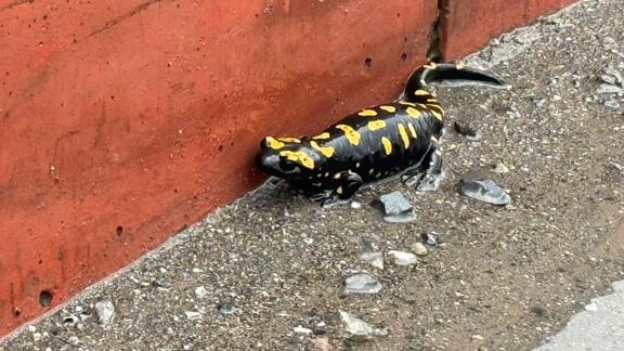 Nesli tehlike altında olmasından dolayı öncelikli korunan türlerden olan sarı benekli semender, araçların altında kalmaması için vatandaşlar tarafından Dörtyol Doğa Koruma ve Milli Parklar Şefliğine götürüldü.