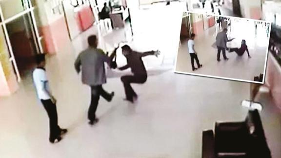 Veli, öğretmen Çelik'in boğazını sıkıp, göğsüne vurduktan sonra yere düşürmüştü.