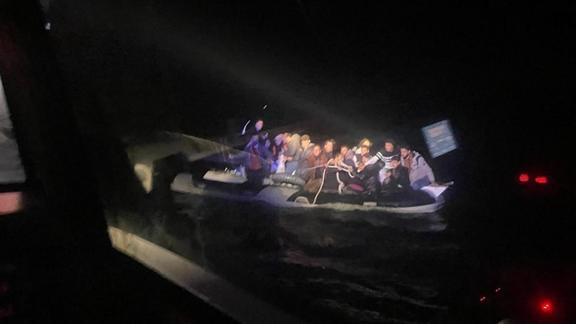 Ekipler, Yunanistan unsurlarınca Türk karasularına geri itilen lastik bottaki 10'u çocuk 30 düzensiz göçmeni kurtardı.