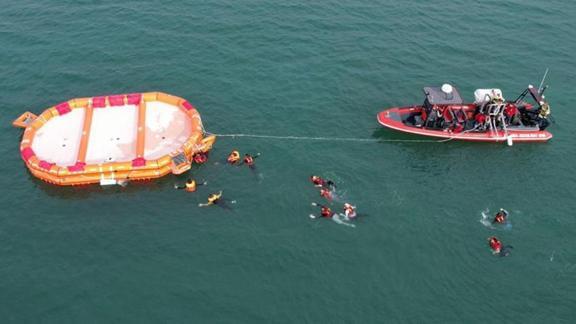 Valilikten yapılan açıklamaya göre, tatbikatta senaryo gereği gövde yangını olan uçak, deniz üzerine acil iniş yaptı.