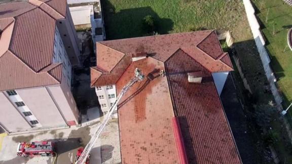 Arnavutköy Haraççı Mahallesi'nde bulunan Borsa İstanbul İmamhatip Ortaokulu'n çatı katında bilinmeyen bir nedenle yangın çıktı.
