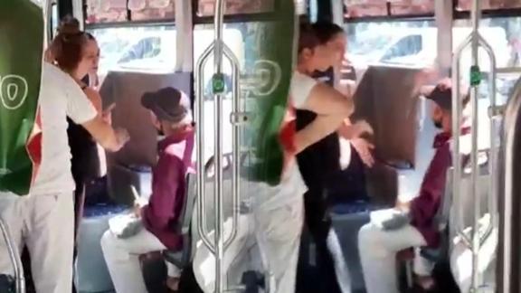 Neye uğradığını şaşıran anne ilk olarak çocuğunu alarak uzaklaştırmaya çalıştı, daha sonra da hakaret ederek bağıran yaşlı adama karşılık verdi. Bu sırada yaşlı adam elindeki ile vurmaya çalışınca kadınla adam arasında tartışma yaşandı. Otobüste bulunanlar ise yaşlı adama tepki gösterdi. Bir süre sonra otobüstekiler kadın ve çocuğunu alarak otobüsün arka kısmına götürüp koltuğa oturttu.