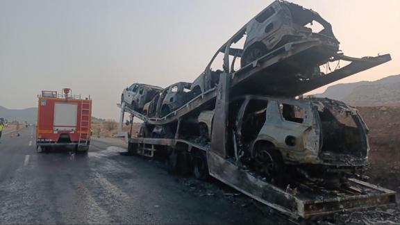 Kavaklı köyü mevkisinde sürücüsünün kimliği henüz öğrenilemeyen yabancı plakalı çoklu araç taşıma hizmeti veren tırda henüz bilinmeyen nedenle yangın çıktı.