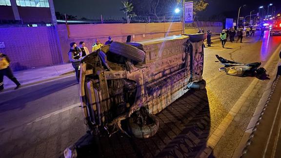 Yan yatan otomobilde bulunan kadın, araçtan yola savuldu.