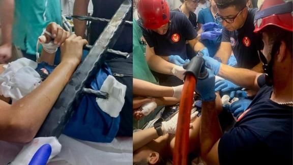 Talihsiz çocuk, demirlerin sağ koluna ve akciğer zarına saplanmasıyla yaralandı. Olay yerine gelen itfaiye ve sağlık ekipleri, büyük acı çeken çocuğu kurtarmak için dikkatli bir çalışma yürüttü. Özel aletlerle demir kesilerek çocuk kurtarıldı.