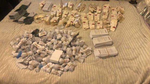 Adreslerde yapılan aramalarda 450 bini Kovid-19 tedavisinde kullanılan tablet hap olmak üzere 950 bin adet sahte ilaç ele geçirildi.