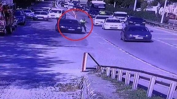 Kontrolü yapan Bedir Yıldız isimli polis memuru araca tutunarak sürücüyü durdurmaya çalıştı. Ancak sürücü buna rağmen kaçmayı sürdürdü. Yaklaşık 20 metre sürüklenen polis memuru, daha sonra bir anda dengesini kaybederek yere düştü ve bayıldı.