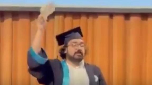 Boğaziçi Üniversitesi 158. Mezuniyet Töreni'nde "Bu diploma hükümsüzdür. Fakülte kapatan, diplomaları iptal eden istibdat rejimini reddediyorum. Diplomamı kayyumdan değil, Boğaziçi'nin seçilmiş rektöründen alırım" sözleriyle eylemde bulunan Doruk Dörücü gözaltına alındı.