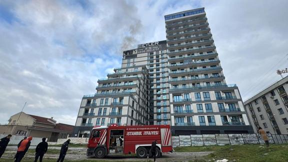 Selahaddin Eyyubi Mahallesi 1548. Sokak'taki 16 katlı binanın üstünde bulunan kafeterya bölümünde henüz belirlenemeyen nedenle yangın çıktı.