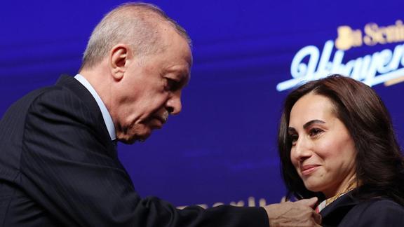Başkan Recep Tayyip Erdoğan, partisinin AR-GE ve Eğitim Başkanlığınca Haliç Kongre Merkezi'nde gerçekleştirilen Teşkilat Akademisi Kapanış Programı'nda, Gürzel ve Cebeci'ye parti rozetlerini taktı.