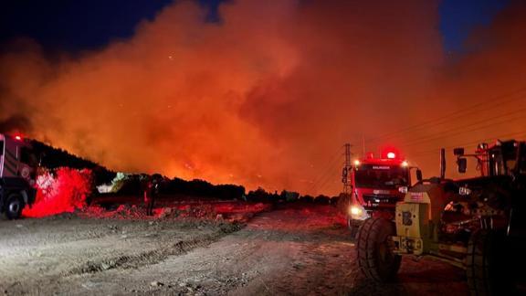 Şiddetli rüzgarın hakim olduğu bölgede başlayan orman yangınına 3 helikopter, 21 arazöz, 6 su ikmal aracı, 9 ilk müdahale aracı, 5 hizmet aracı, 1 dozer, 1 greyder ve 150 personel ile müdahale ediliyor.