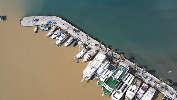 Buradan akan çamurlu su, denizin yüzeyini kahverengiye dönüştürdü.