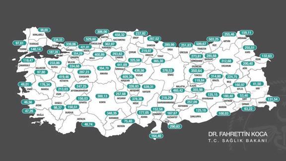 Sağlık Bakanı Fahrettin Koca, 18-24 Eylül'de illere göre her 100 bin kişide görülen Kovid-19 vaka sayılarını açıkladı.