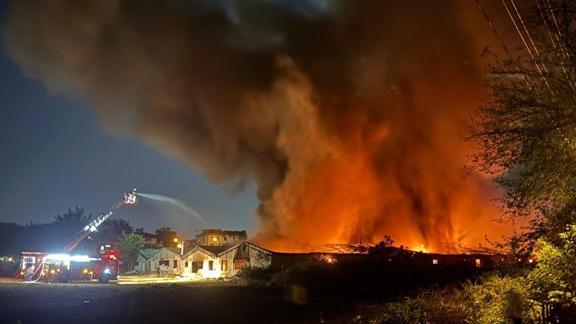Yangın nedeniyle bölgede yoğun duman oluşurken, ara ara patlama sesleri duyuldu.