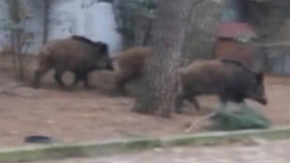 Ormanlık alandan ilçe merkezine inen domuz sürüsü, ana cadde üzerinde yiyecek aradı.Bir süre caddede ilerleyen sürü, fındık bahçesine girerek gözden kayboldu.Domuzların yiyecek araması cep telefonu kamerasıyla kaydedildi.