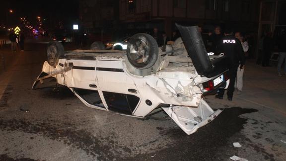 Şaban E'nin (25) kullandığı 55 LE 569 plakalı otomobil, Samsun-Sinop kara yolu Kavakpınar Mahallesi'nde, refüjdeki bariyerlere çarparak devrildi.