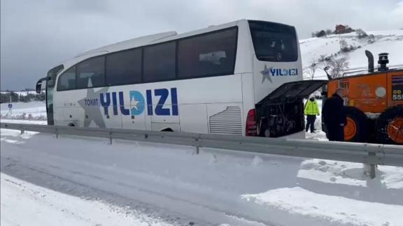 Samsun'un Alaçam ilçesinde, buzlanma nedeniyle kontrolden çıkan yolcu otobüsü refüjde kara saplandı.