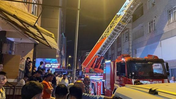 Polis sokakta güvenlik önlemi alırken, itfaiye görevlileri 5 katlı binadaki yangını söndürmek için çalışma başlattı.