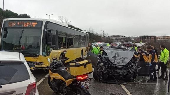 Alınan bilgiye göre, TEM bağlantı yolu Kartal istikametinde sürücüleri ve plakaları henüz öğrenilemeyen otomobil ile İETT otobüsü çarpıştı.